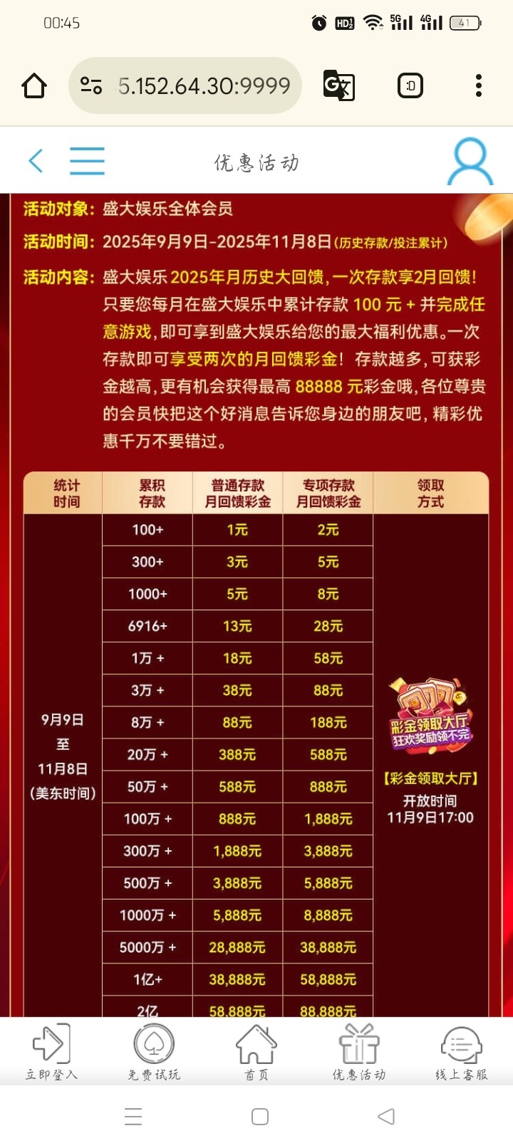 【盛大娱乐】存款回馈