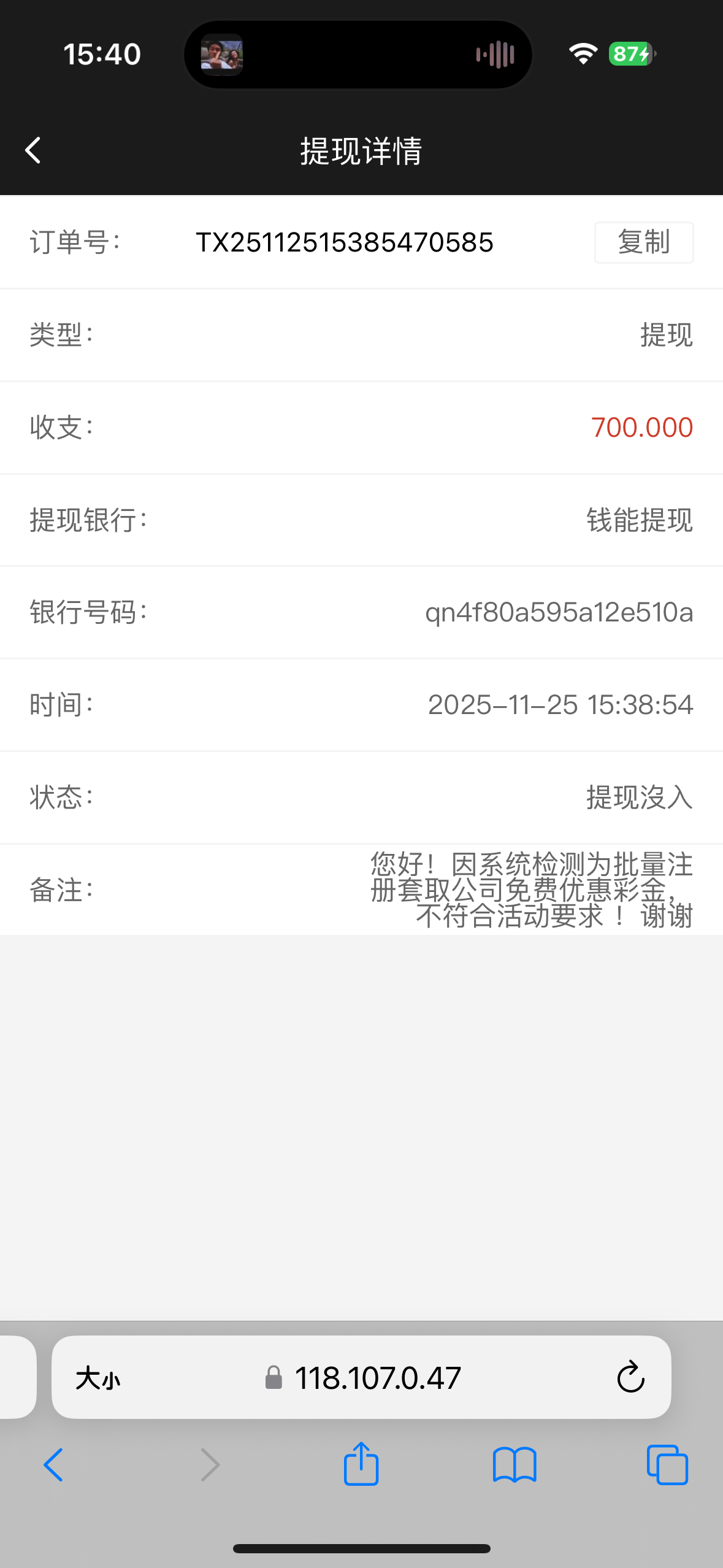 以前收到过,打出来提款黑了